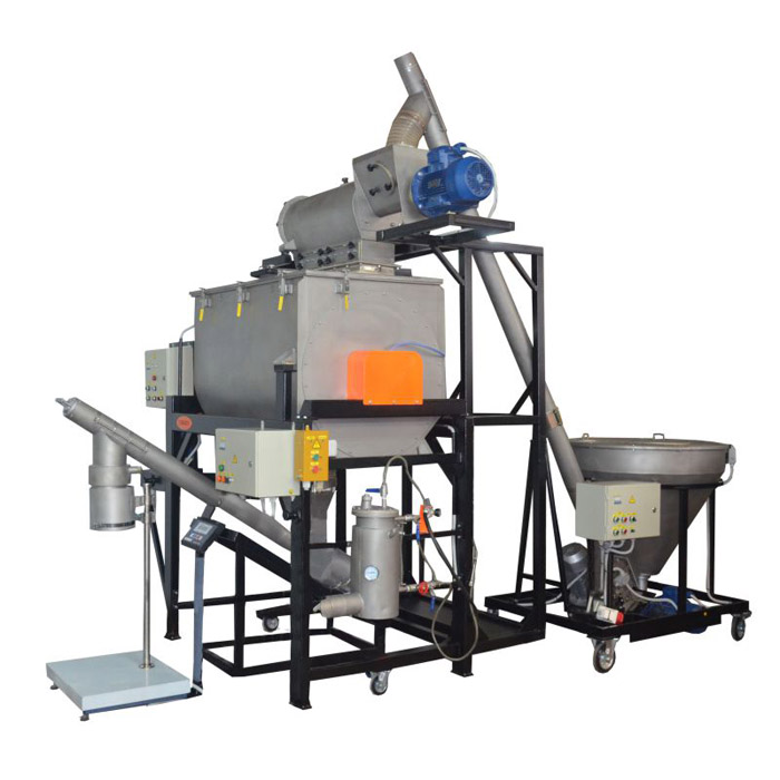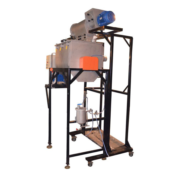En el proceso de descarga del tamiz de sinfín están envueltas varillas magnéticas especiales que realizan la función de captación de partículas metálicas e impurezas ferrosas del polvo. Pasado el captador magnético, el producto se descarga a través de un tubo y se dirige (si así lo requiere el proceso tecnológico) a las etapas posteriores de procesamiento.