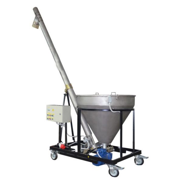 El transportador de tornillo sinfín proporciona una elevación rápida del producto a una altura de hasta 3 metros.