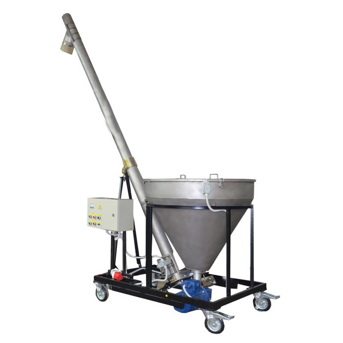 El cargador de tornillo sinfín está diseñado para alimentar productos en polvo y finamente divididos: harina, almidón, leche en polvo, aditivos alimentarios, azúcar, sal, especias, etc.
